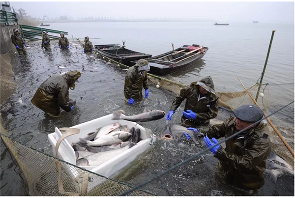 鱼网不停被拉出水面