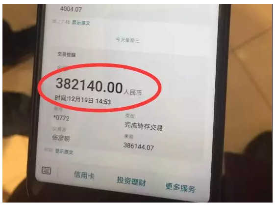 由于一时大意点错转款对象,382140元购羊款汇入去年的合作伙伴,河北省保定市唐县黄石口乡张某朝的账户上。