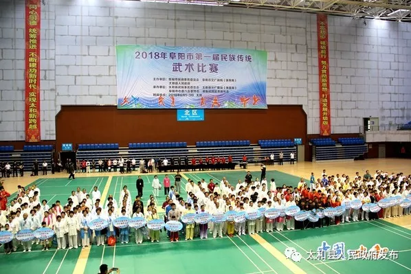 为进一步巩固和发展我市少数民族传统体育项目和优势项目,弘扬中华优秀传统文化,培养少数民族传统体育人才,增强各族群众身体素质,迎接2018年第八届全省少数民族传统体育运动会的胜利召开,阜阳市民族事务委员会、阜阳市文广新(体)局,于2018年6月1日-3日在太和县体育中心举办阜阳市第一届民族传统武术比赛。安徽省民委民族二处处长张旭东、阜阳市委统战部副部长、市民委(市宗教局)主任(局长)李士坤、市民委(市宗教局)副主任(副局长)韩斌、市文广新(体)局副局长苏峰、太和县政府副县长闪旭等领导参加了阜阳市第一届民族传统武术比赛开幕式。