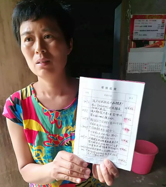 当邓书标的妻子问及这扶贫手册上的东西呢?是谁签的字?村干部邓启民说这是应付上面检查的!