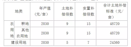 根据《安徽省人民政府关于调整安徽省征地补偿标准的通知》(皖政〔2015〕24号),初步按下表确定土地补偿费和安置补助费标准拟定《征收土地方案》上报审批。