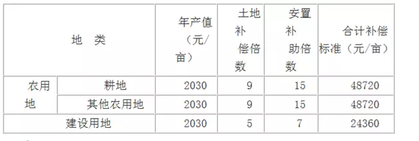 根据安徽省人民政府《关于调整安徽省征地补偿标准的通知》(皖政〔2015〕24号),该用地征地初步按下表确定土地补偿费和安置补助费标准拟定《征地土地方案》上报审批。